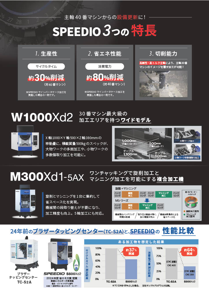 最新のSPEEDIOは、従来の主軸40番相当のマシンと比較して、驚異的なコストパフォーマンスを発揮します。